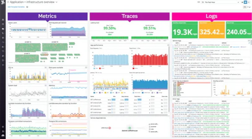 Datadog is a SaaS platform that provides cloud-based IT infrastructure and application performance monitoring as well as log management functionalities. It can be deployed in all sorts of environments from on-premises, hybrid, and IoT infrastructures to multi-cloud environments.