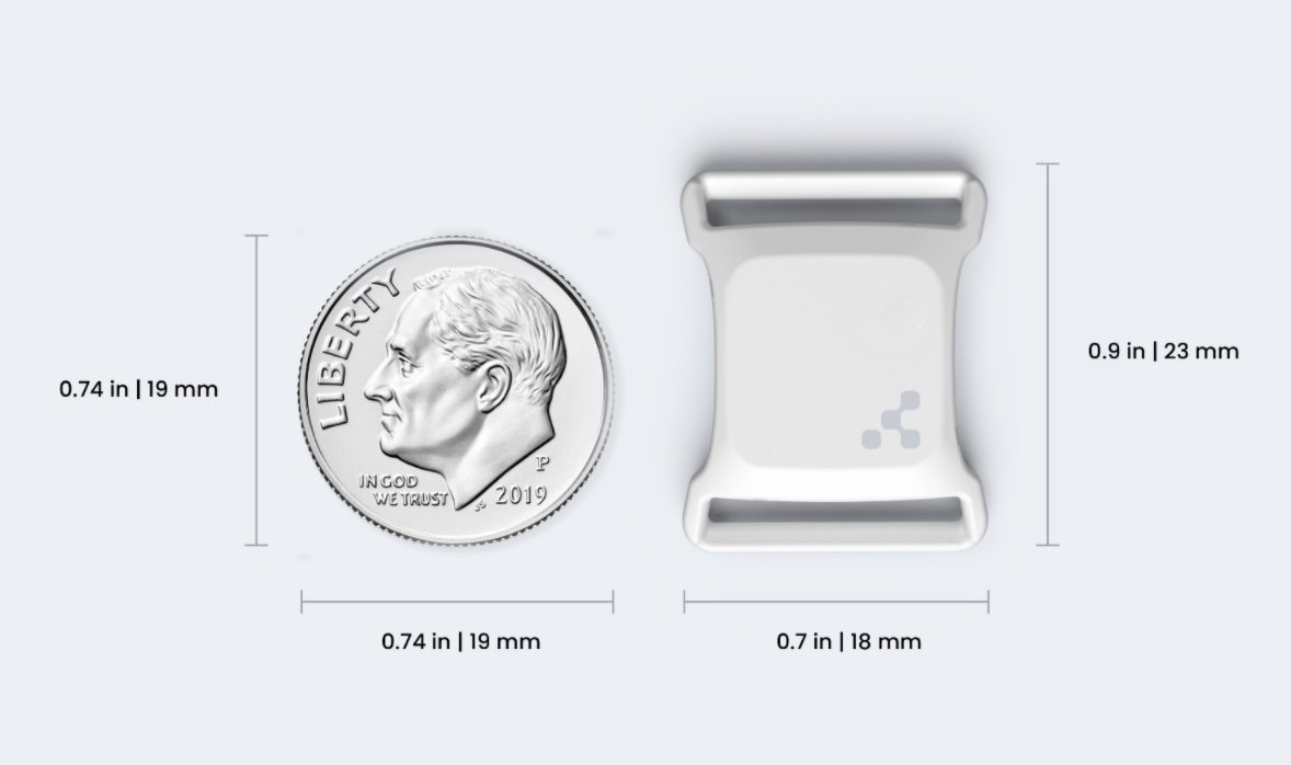 The new tag from Kontakt.io measures 23mm x 5.3mm, weighs 2g, and is waterproof. It is powered by a silver oxide battery, with up to three months of battery life, according to the manufacturer, making one transmission per second (1 Hz). Battery life can be extended to a year of operation with a lower refresh rate. It is compatible with Bluetooth 5.0.