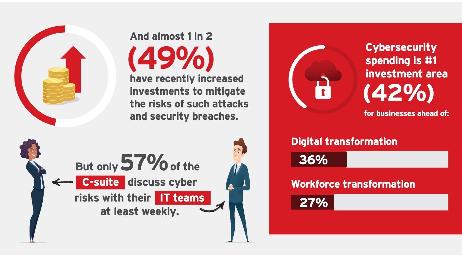 Die gute Nachricht: Die aktuellen Investitionen in Cyber-Initiativen stehen nicht auf einem kritisch niedrigen Level. 42 % der Befragten gaben an, dass sie mehr in „Cyber-Angriffe“ investieren als in andere Bereiche, um die Risiken für das Unternehmen zu verringern. Die niedrige Beteiligung der Geschäftsleitung an Entscheidungen deutet jedoch darauf hin, dass tendenziell „einfach nur Geld bereitgestellt wird“, um das Problem zu lösen. Stattdessen müssten aber ein Verständnis für die Herausforderungen im Bereich der Cybersicherheit entwickelt und entsprechende Investitionen getätigt werden. Dieser Ansatz kann die Anwendung effektiverer Strategien behindern und das Risiko finanzieller Verluste erhöhen. Weniger als die Hälfte (46 %) der Befragten meinten, dass Begriffe wie „Cyberrisiken“ und „Cyberrisikomanagement“ in ihrem Unternehmen allgemein bekannt sind.