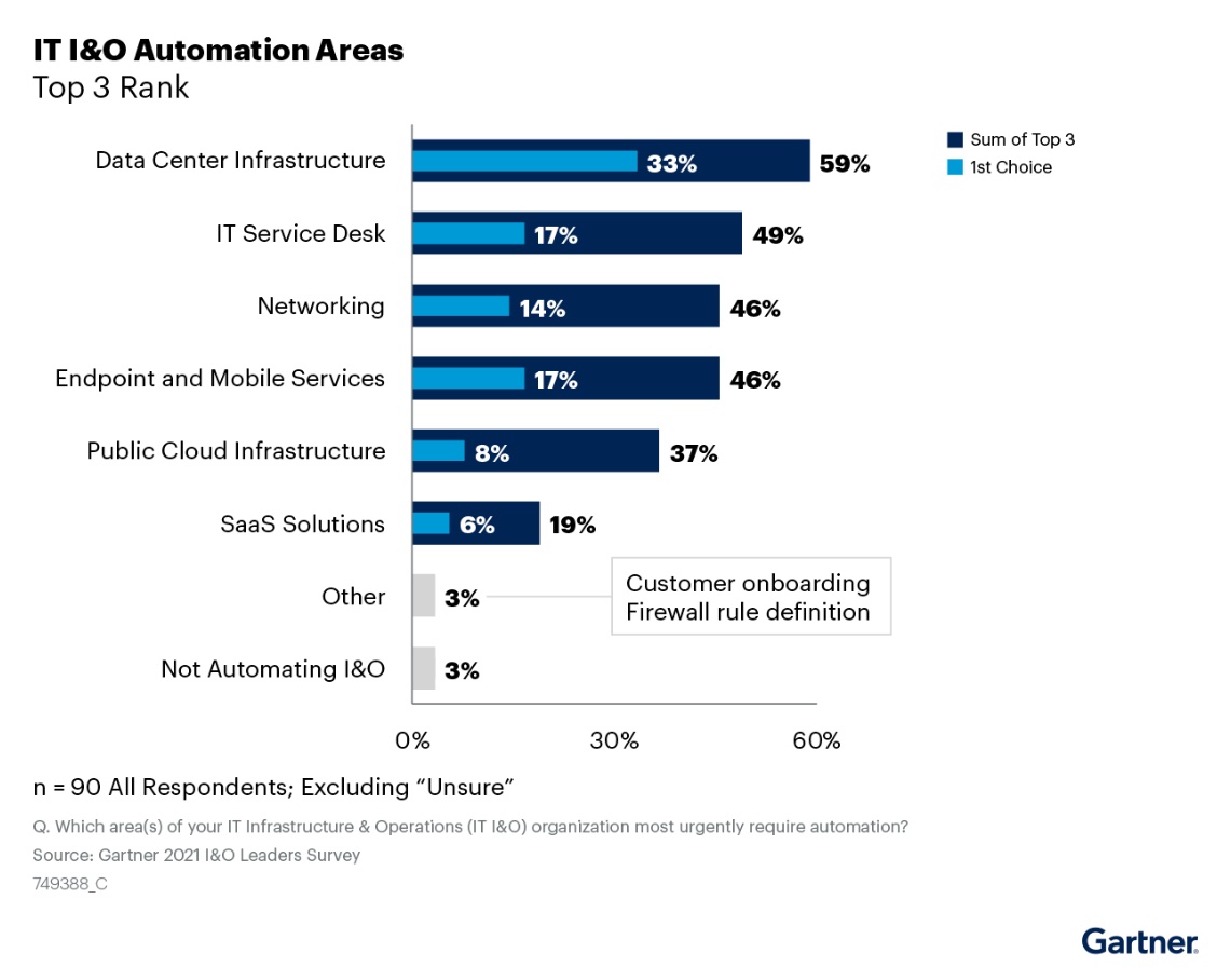 In einer kürzlich durchgeführten Gartner-Umfrage wiesen I&O-Führungskräfte auf den Bedarf an Unternehmensautomatisierung in ihren Rechenzentren hin.