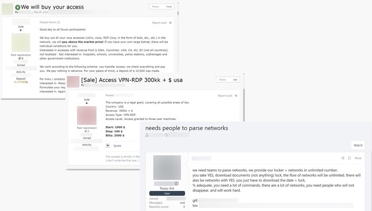 Wie Sie sehen, ändert sich das Modell für den Einbruch in Unternehmen. In Bezug auf die technische Kompetenz nehmen die Kriminellen eine Rangfolge ein und vermarkten ihre Taktiken über Anzeigen im Darknet. Gering qualifizierte Hacker können nun ein Auge auf die Netzwerke großer Unternehmen mit Sicherheitslücken, ungeschützten Anwendungen, ungepatchter Software oder schwachen Administratorpasswörtern werfen. Dabei sind sie auf der Suche nach einer einfachen Geldquelle und denken bereits darüber nach, anfällige Zugänge im Darknet zu bewerben. Dies ist in Zeiten der Pandemie besonders attraktiv, da viele Berufstätige aus der Ferne arbeiten und auf Unternehmensnetzwerke zugreifen.
