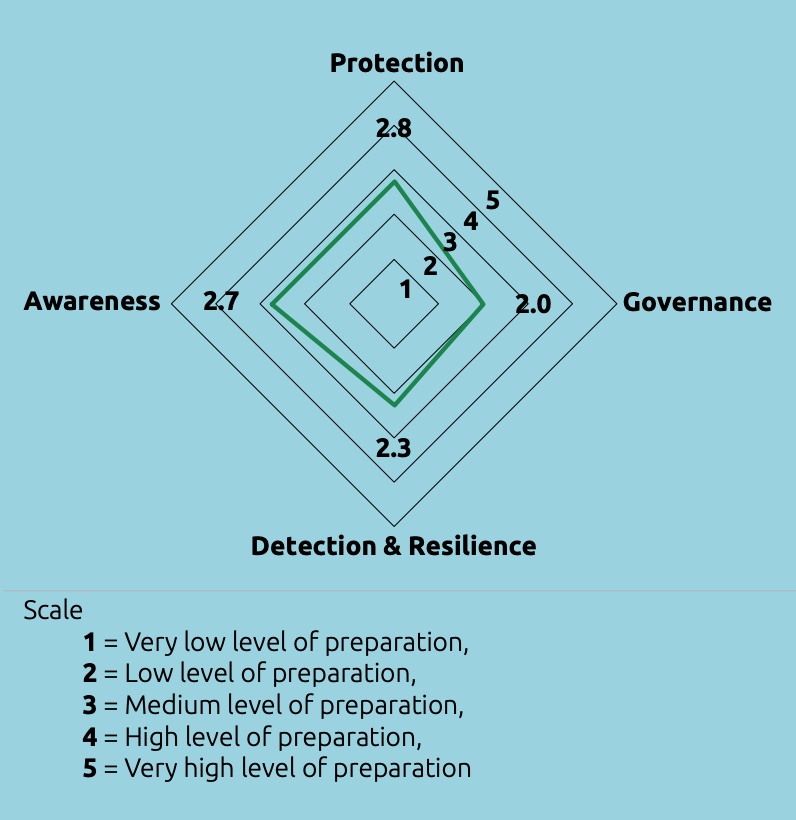 Insgesamt betrachtet sind die Fabriken in Bezug auf Sensibilisierung, Governance, Schutz, Aufdeckung und Widerstandsfähigkeit schlecht vorbereitet. Die Analyse von Capgemini zeigt, dass die Governance ein besonders besorgniserregender Bereich ist, der hinsichtlich zahlreicher Parameter den niedrigsten Vorbereitungsgrad aufweist. Bezüglich der Sensibilisierung muss der Zugang zu Echtzeitinformationen über aktuelle Bedrohungen und historische Daten sichergestellt werden, um auf die wichtigsten Anwendungsfälle in der Smart-Factory-Industrie vorbereitet zu sein.