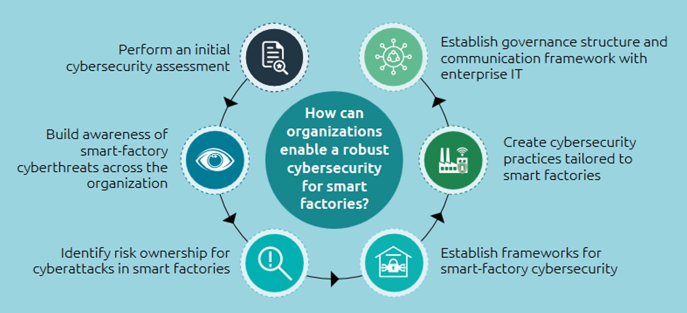 4. Aufbau von Infrastrukturen für die Cybersicherheit: Diese Systeme sollten sich an globalen Protokollen für smarte Fabriken orientieren und mit einem breiten Ökosystem von Anbietern abgestimmt sein. Solche Strukturen können unter anderem die Installation von Patches und Updates gegen Bedrohungen erleichtern.