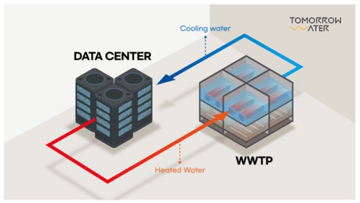 Das Herzstück des Konzepts ist der Austausch und die Wiederverwendung von Abwasser und Wärme zwischen den Kläranlagen und den Rechenzentren. Denn die aus den Rechenzentren abgeleitete Warmluft wird in den Anlagen zur biologischen Behandlung und/oder Schlammtrocknung eingesetzt. Umgekehrt wird das von den Anlagen aufbereitete Kaltwasser zur Kühlung der Rechenzentren genutzt. Für diese Idee hat Tomorrow Water bereits ein Patent angemeldet.
