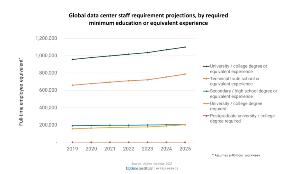 Given this scenario, qualifying and quantifying the data center staffing demand can help professionals who are looking for placement or advancement in their career, data center operators, or even educational institutions to invest in the appropriate fronts in order to meet such demand.