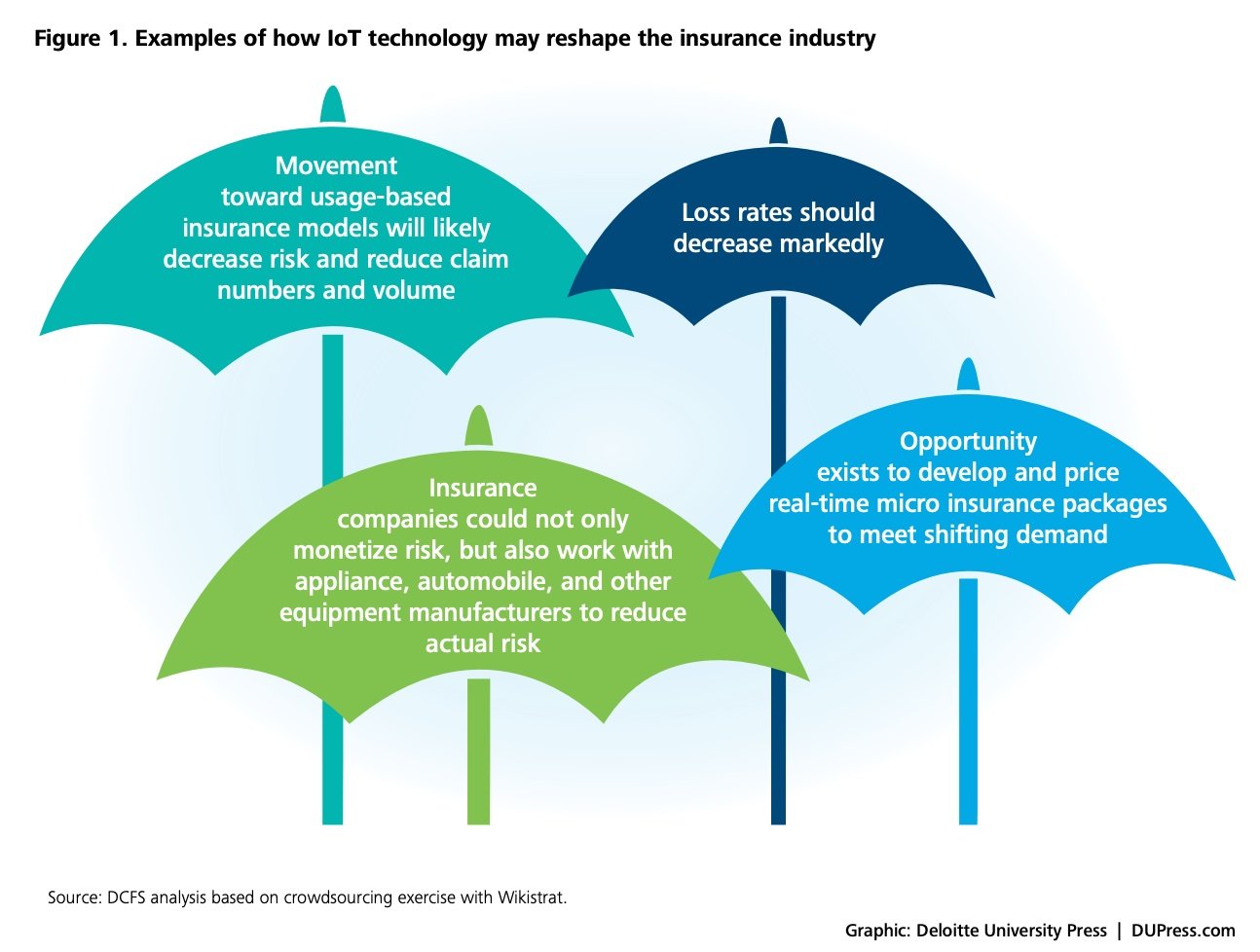 To better understand the potential applications of IoT in the insurance industry, the Deloitte Center for Financial Services (DCFS), together with Wikistrat, polled researchers, technology and finance experts, and entrepreneurs from 20 countries and asked them to imagine how the Internet of Things could be applied in the context of insurers. The images below illustrate how IoT could reshape this industry in the view of these audiences.