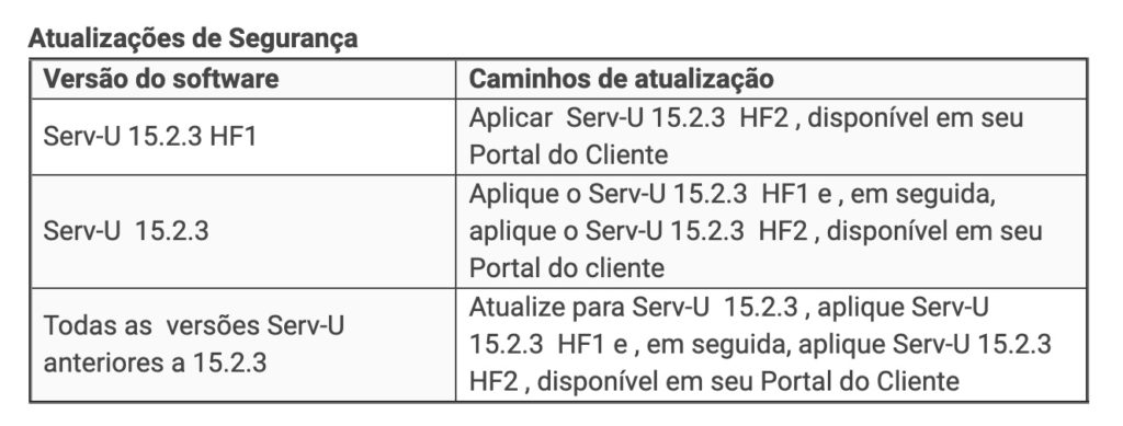 The vulnerability affects the latest Serv-U version 15.2.3 HF1 product, released on 5 May 2021, and all previous versions. A hotfix is now available (the Serv-U 15.2.3 HF2). Please refer to the security updates table below for the update applicable to your system. The company recommends that customers install these updates immediately.