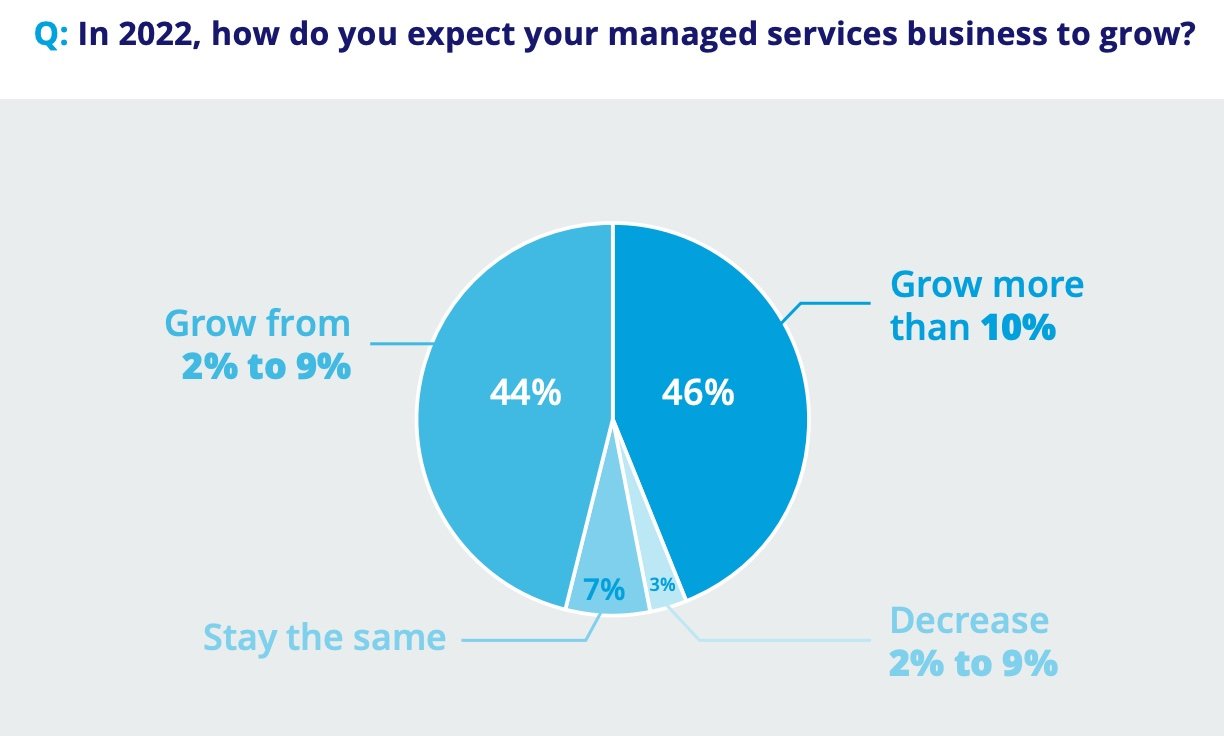 To support such growth, MSPs need to be prepared. Nearly half of respondents (46%) to an OpsRamp survey expect to see their managed services business grow by more than 10% by 2022, while another 44% expect to report expecting growth rates of between 2% and 9%.