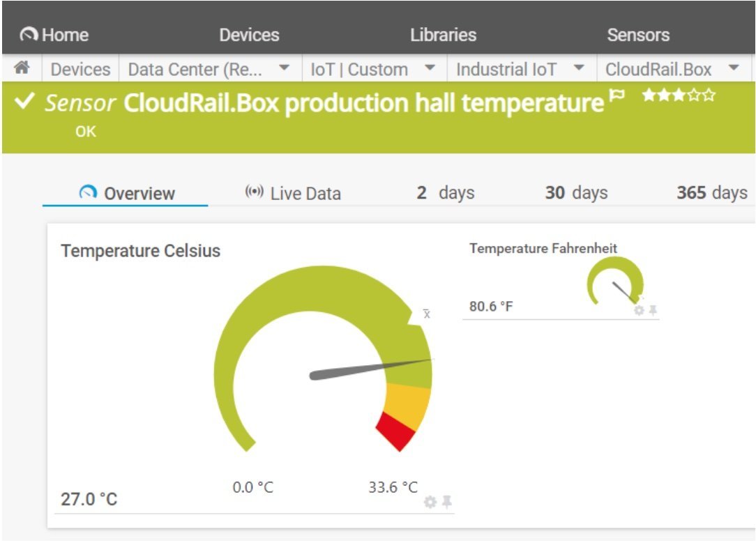 Como já indicado no título, há rumores de que muitas soluções de IoT são conceitos incompletos que ainda não são realmente comercializáveis e não suficientemente testados. Bem, o Paessler PRTG é a resposta principal para refutar essa suspeita. A partir desta solução, a Paessler projetou uma solução de IoT especializada — mais sobre isso em um momento — mas a Paessler PRTG já pode resolver mais de 80% de todos os desafios comuns de monitoramento de condições.