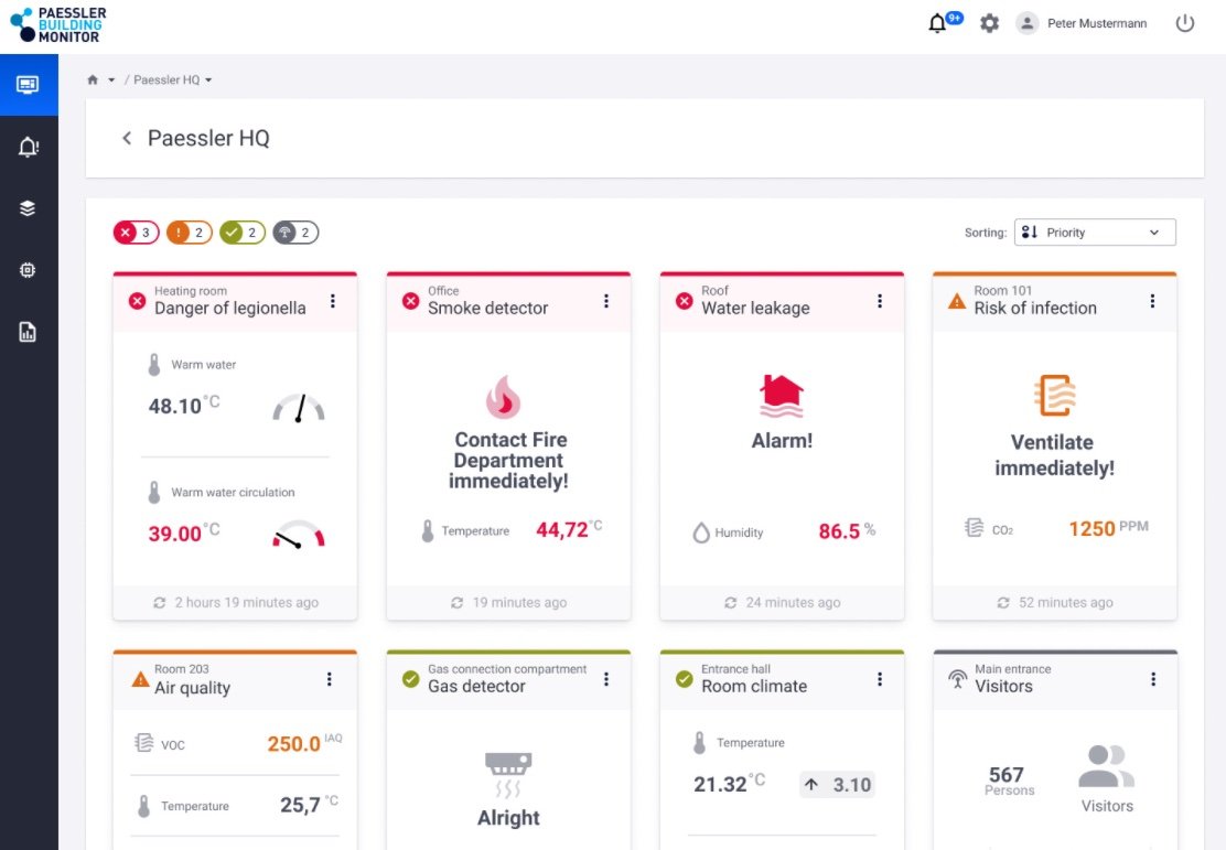 O Paessler Building Monitor é uma solução de Condition Monitoring completamente nova da Paessler que pode ser adaptada individualmente a diferentes desafios e requisitos. Os casos de uso padronizados cobertos pelo Paessler Building Monitor incluem qualidade do ar, detecção de fumaça e gás, clima interno, ciclo de aquecimento, prevenção de mofo, iluminação e muito mais. Com um assistente fácil de usar, os dispositivos IoT podem ser conectados rapidamente ao Paessler Building Monitor. Os modelos de caso de uso pré-configurados fornecem valor genuíno e fornecem insights significativos. Os usuários podem construir em limites predefinidos para definir alarmes e notificações, para que os usuários sempre saibam o estado atual de seus edifícios e protejam o valor de seus ativos. Também é fácil exportar dados para relatórios engenhosos para processamento posterior.