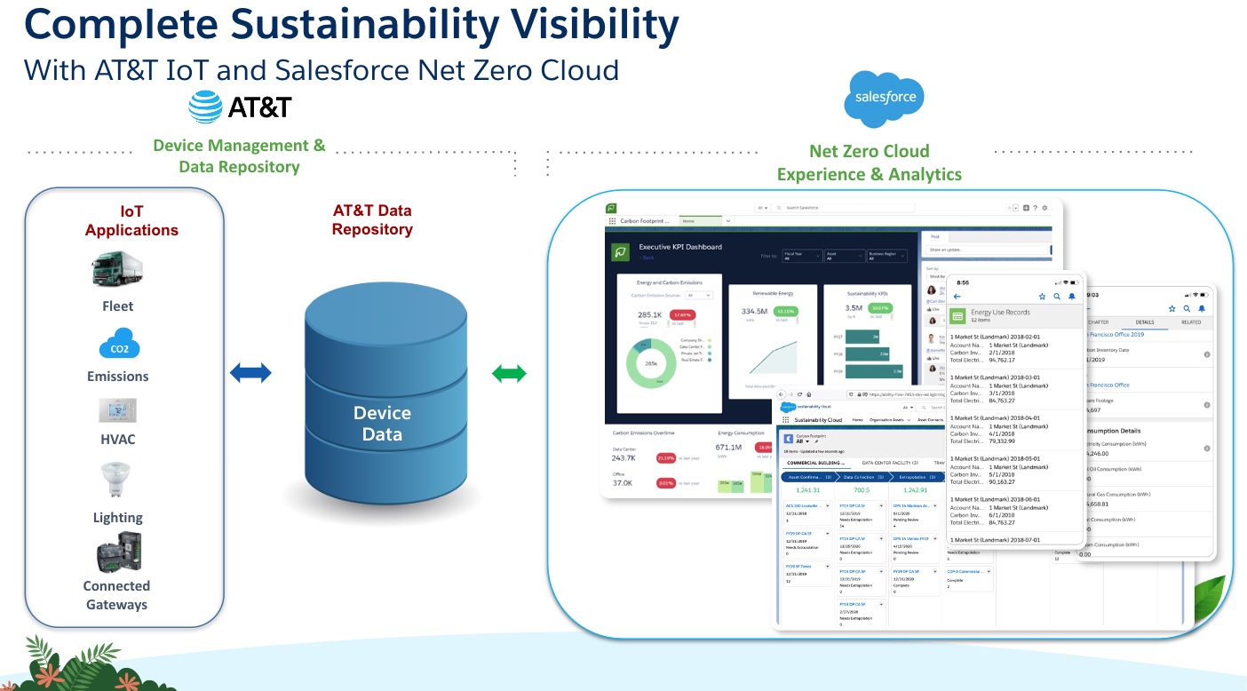 Salesforce and AT&T have joined forces to reduce greenhouse gas emissions from Internet of Things (IoT) connected devices.